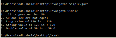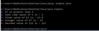 System.out.println("The interger type value '"+d2+"' is given as :"+d2.intValue());
