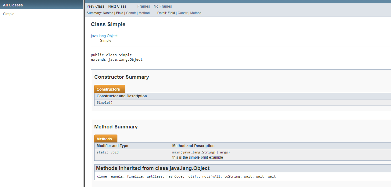 You can see many html files are creating. You can open the index.html file to get the class information. Below is the index.html file for the above class.