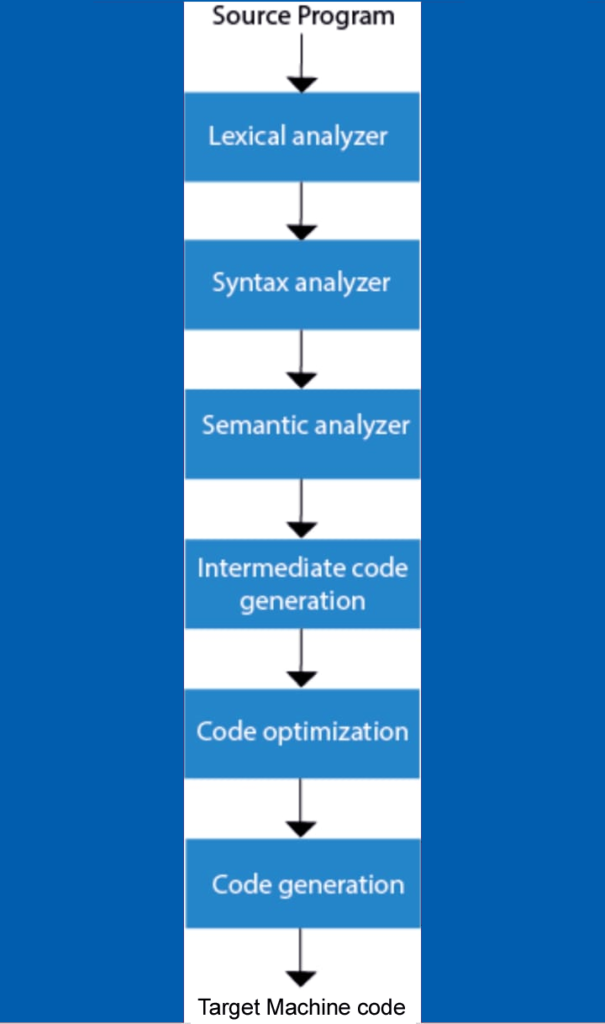 The complete working of the compiler is divided into several steps, which are also known as compilation phases. These are: 1st Phase: Lexical Analysis 2nd Phase: Syntax Analysis 3rd Phase: Semantic Analysis 4th Phase: Intermediate Code Generation 5th Phase: Optimization 6th Phase: Target Code Generation In the Lexical Analysis phase, the compiler scans the code from left to right and top to bottom. It also generates and groups the tokens. During Syntax Analysis , the compiler generates an Abstract Syntax Tree (AST) using tokens generated in the first phase. Here, the compiler also checks and verifies the structure and grammatical syntax of the source code. In this phase, if the compiler finds any error in the source code, it raises a compilation error. After Syntax Analysis , the compiler performs Semantic Analysis. In this compilation phase, the compiler uses AST generated during the Syntax Analysis phase and checks the semantic errors of the program. In the 4th Phase of compilation, the compiler performs Intermediate Code Generation. Here the compiler generates an intermediate code that is closer to the machine code and platform-independent. This intermediate code is converted to the targeted machine code in the 5th and 6th phases of the compilation process. In the Code Optimization phase, the compiler optimizes Intermediate Code in such a way that it only consumes fewer resources with better efficiency. The last phase of compilation is Target Code Generation, where the compiler converts the intermediate optimized code to targeted machine language code so that the computer (or CPU) can execute the program.