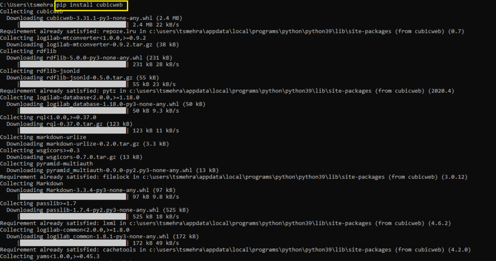 There are various methods to install a cubic web framework in Python, and the easiest way is by using the Python pip install command .