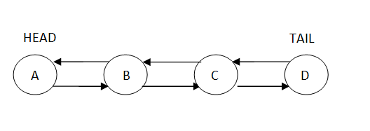 points to None and the next points to the next node and the tail node’s prev points to the second last node, and the next points to None.